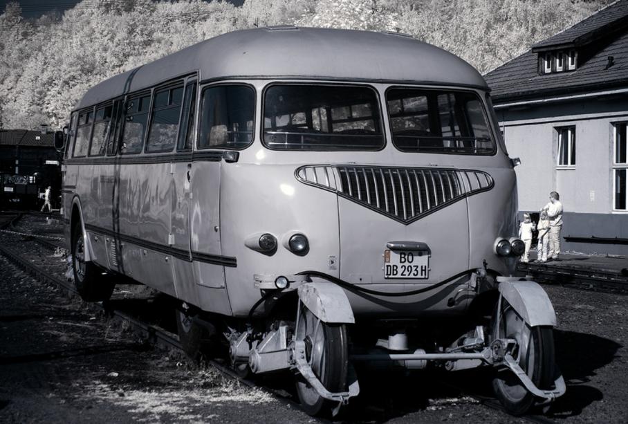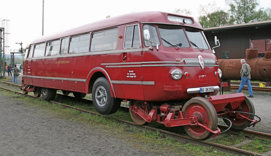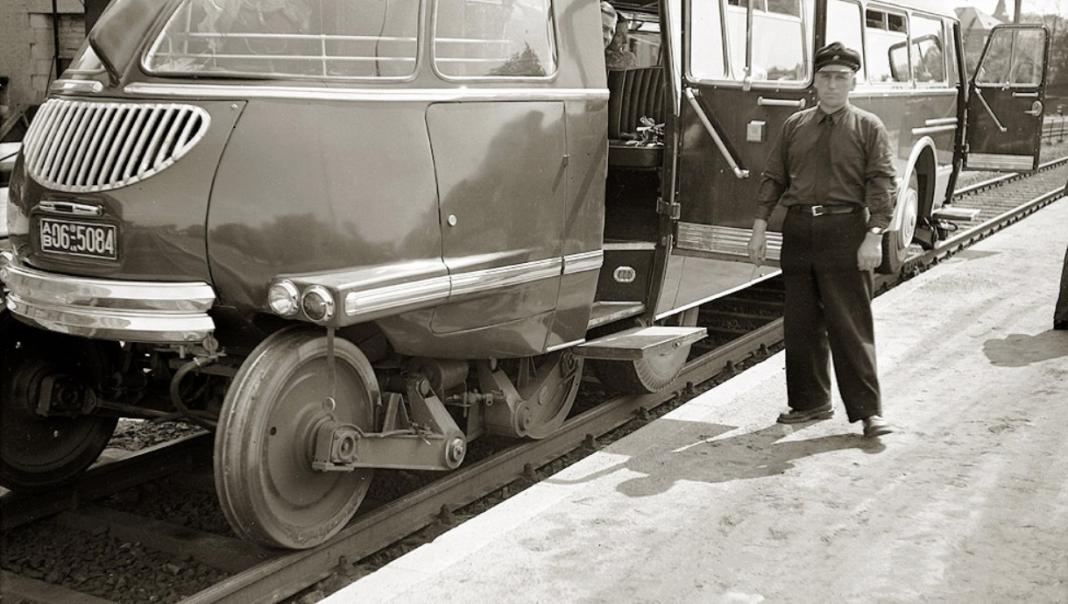 Развитием идеи "автобус - ж/д" стало новое транспортное средство, которое появилось в 50-х годах на линиях DB. Это ТС получило название "Ши-Штра-Бус", что в развернутом словосочетании означало "Schienen-Strassen-Omnibus" - "Рельсово-уличный автобус". Основа идеи - перевозить небольшое кол-во пассажиров на малодеятельных участках с последующим переходом на обычную дорогу и доставку людей на хутора, находящиеся далеко от ж/д станций. То, есть "от двери до двери" без пересадок на другие ТС.