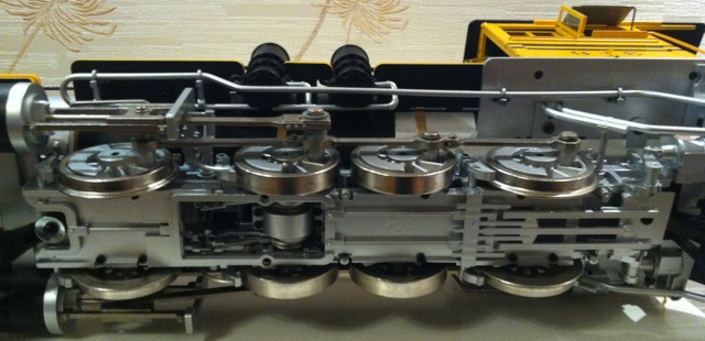 Средние 2 колёсные пары без реборда. Труба для заливки масла в парогенератор не открычивается, а легко вытаскивается если слегка покачивать вперёд-назад. На морде трёхпозиционные переключатели DCC, OFF, DC для управления 1) дымогенератором, 2) светом кабины, 3) внешним светом. В тендере снимается верхняя крышка. Под ней материнская плата с разъёмами для DCC-декодера. Мама крепится на тяжёлую металлическую раму. Под мамой в этой раме большой динамик. Сзади тендера вентилятор. В инструкции написано, что его надо подключить к гнезду COM3, когда будете вставлять декодер. А декодеры (судя по результатам поиска в сети) бывают разные, даже с радиаторами для охлаждения. На метринской плате маленький переключатель - количество чуффов на один оборот колеса: 2 или 4. И 3 больших переключателя: 1) питание трэк-батарейки, 2) полярность, 3) выключатель мотора. На снимке показана заглушка разъёма DCC-декодера 23-pin. В комплекте прилагаются: переходник для декодеров на форм-фактор 23-pin, жидкость парогенератора, куча мелочёвки, различные сцепки, фигурки машиниста и кочегара (по-моему, кочегар большего масштаба) Вложение 90 Вложение 91 Вложение 92 Вложение 93 Вложение 94 Вложение 95 Вложение 96 Вложение 97 Вложение 98 Вложение 99 Вложение 100 |