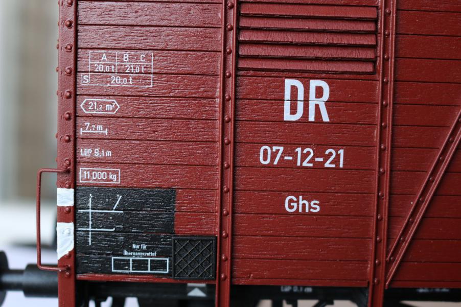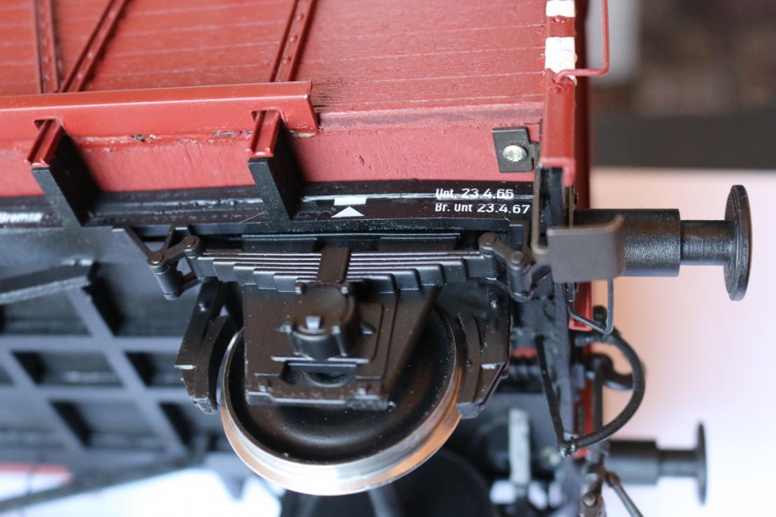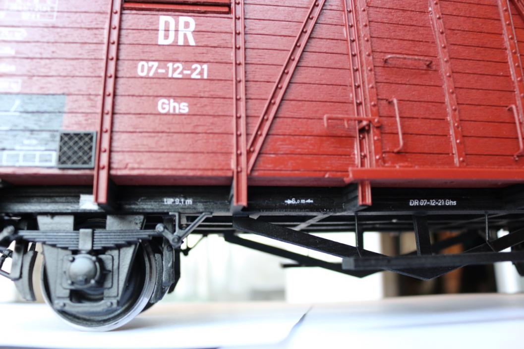 Деревянные вагоны очень лёгкие. Кроме дерева используется полистирол и белый металл. Модели делаются на заказ и за дополнительную плату могут быть состарены и оснащены всякими дополнительными вкусняшками в подвеске. Те, которые на фото, я брал готовые на eBay (не заказывал) и они, судя по всему, оказались в минимальной комплектации. Крытый грузовой вагон Oppeln эпоха III восточная Германия DR Длина: 405мм; ширина: 144мм; высота: 180мм. Винтовые сцепочки сделаны по-честному - завинчиваются как надо - с левой и правой резьбой. Буфера хорошо подпружинены; ход 7мм; левая тарелка плоская, правая выпуклая. Кол.пары, однако, без подшипников (не Magnus) и не могут крутиться независимо. Рама, которая по идее должна быть металлической, здесь сделана также из дерева. Не понял из чего склеена крыша. Двери не открываются. Последний раз редактировалось VovaTuf; 16.01.2016 в 18:53. |