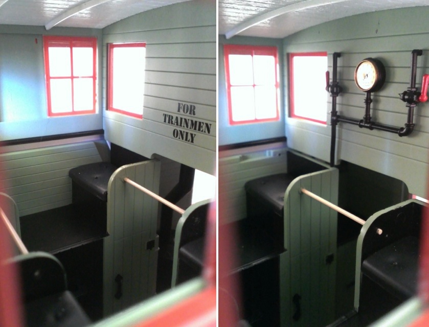 За два года эксплуатации Кабуза американские сотрудники ж/д сломали маркизу над одним из окон, оторвали шкафчик, который под потолком (правда говорят, что он уже был сломан) и немного замусорили помещение. Решил им помочь навести порядок. Подклеил маркизу и шкафчик; протёр за них пыль с мебели. Потолок нормальный, покраски пока не требует.