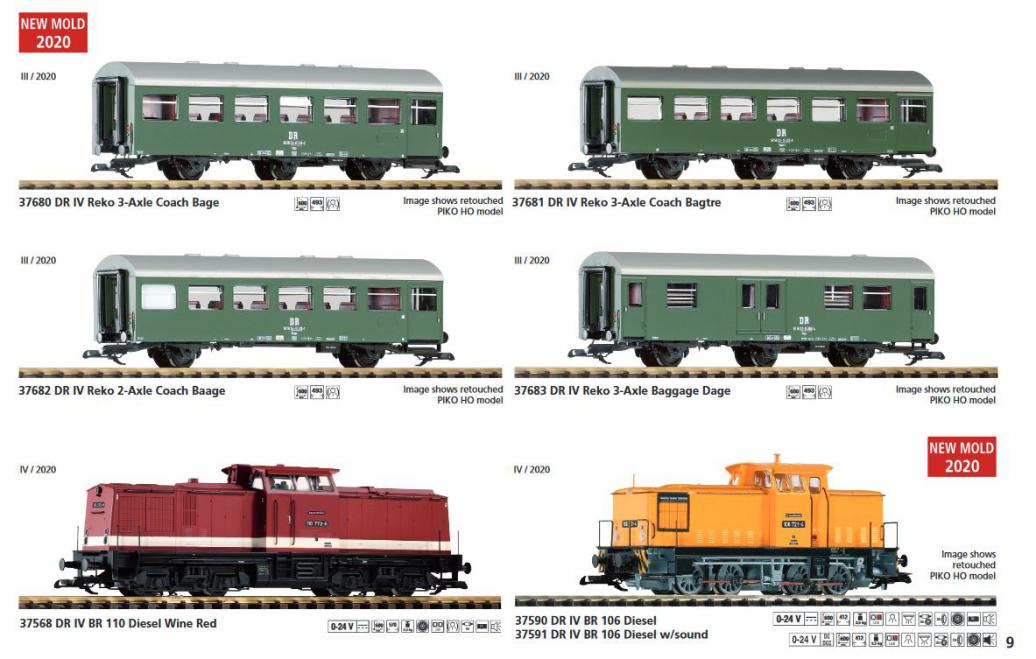 https://www.piko.de/KAT_PDF/99720US.pdf Из интересного - это, разумеется "полтинник" BR 050, в четвертой эпохе DB А так же гэдээрошный тепловоз BR106 и трехосные пассажириски вагоны. Вцелом, очень неплохо! |