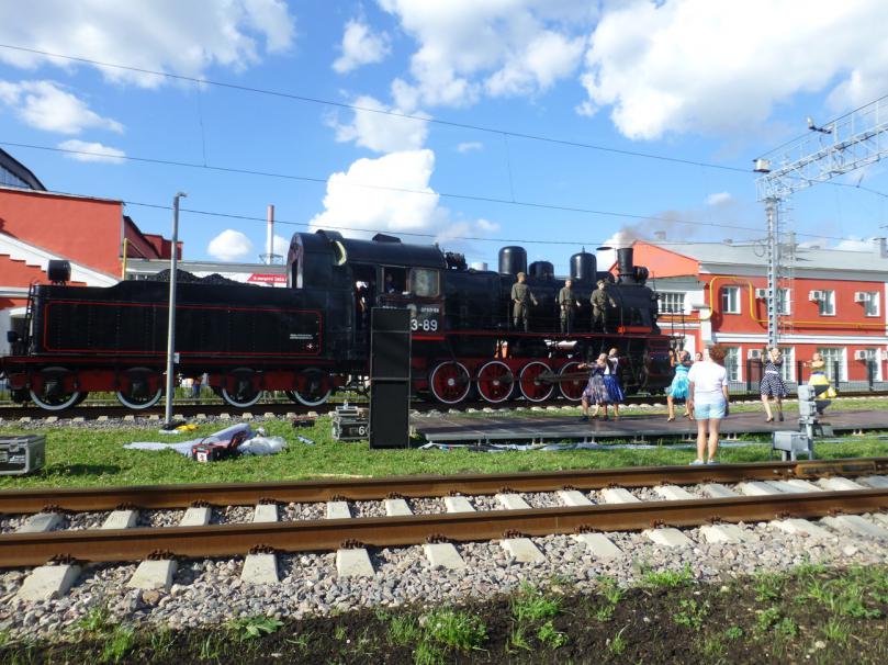 Короче, докладываю. Побывал на репетиции, будет веселенько и патриотично. Первый прогон в 10.30, а второй прогон в 14.00. Проход свободный до определенного кол-ва зевак. Мест на трибунах не очень много. Кто-то грит, што возможно будет ВВП, но мне кажецца, что это фейк. На параде пройдут Ов 324, 9П, Эу, Эр, Су, Л, Лв, П36 в синей ливрее. Некоторые паровозы будут тащить по паре соответствующих эпохе вагонов. Рядом будут стоять горячие П36 в зеленой ливрее и "фашист". Перед паровозами будут костюмированные танцульки и соответствующая эпохе музыка. Мне показалось, что мероприятие будет повеселее, чем в Щербинке в прошлые года. Ну а пока шла репетиция, я поработал кочегаром на "овечке", потусовался с Вульфовым, прокатился на "фашисте" и дал ему ходу.