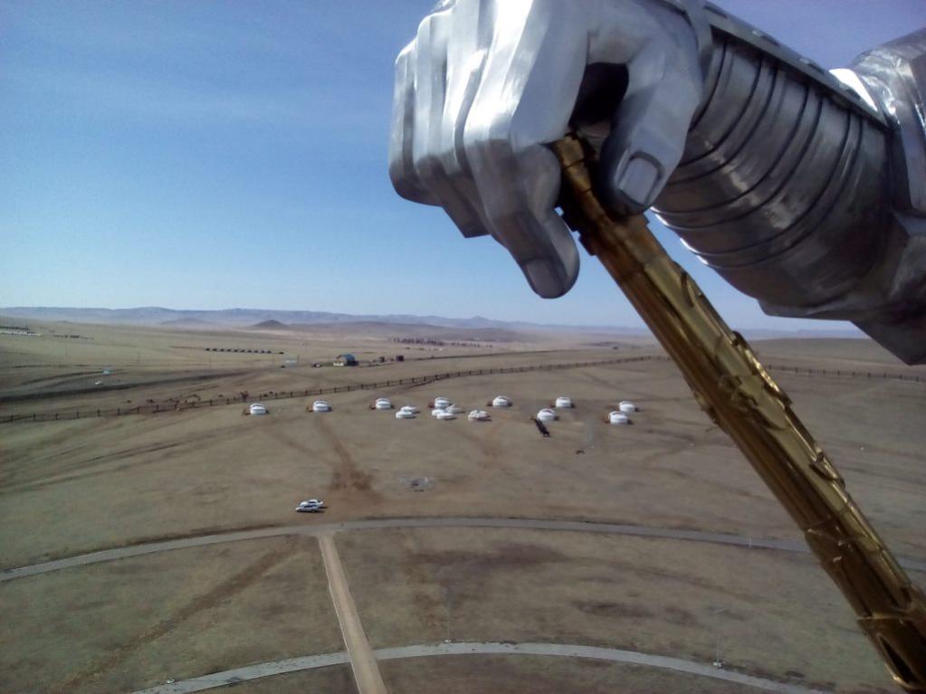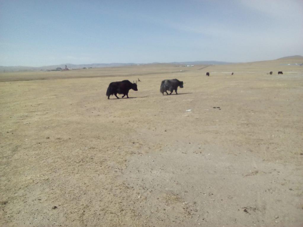После поездки нас погрузили в машину и повезли смотреть эпический памятник Чингизхану. Зрелище потрясающее-Чингисхан в распадке между двух гор на коне-250 тонн и 40 метров высотой. А на обратном пути нам повстречались яки. Близко подойти не дали, но снять получилось.