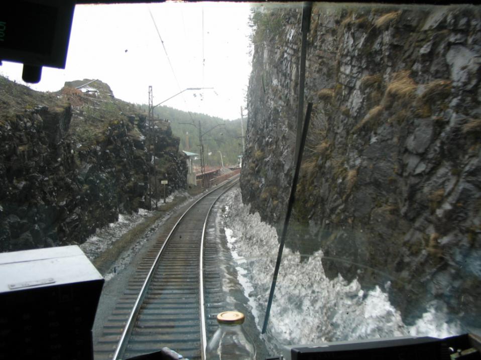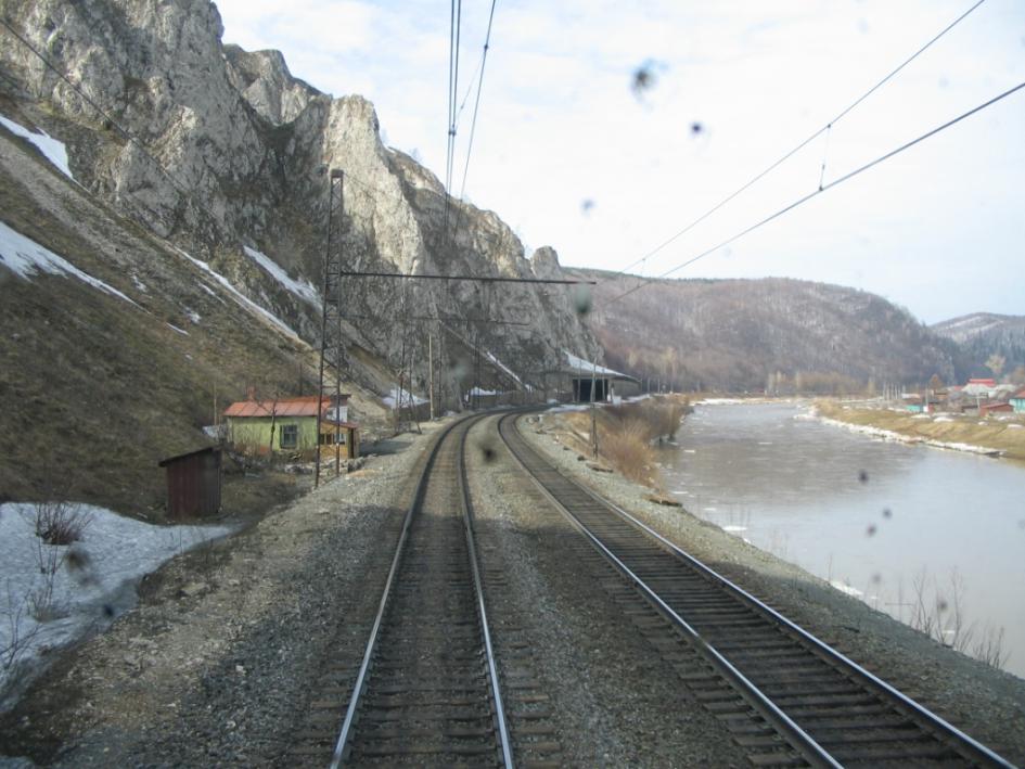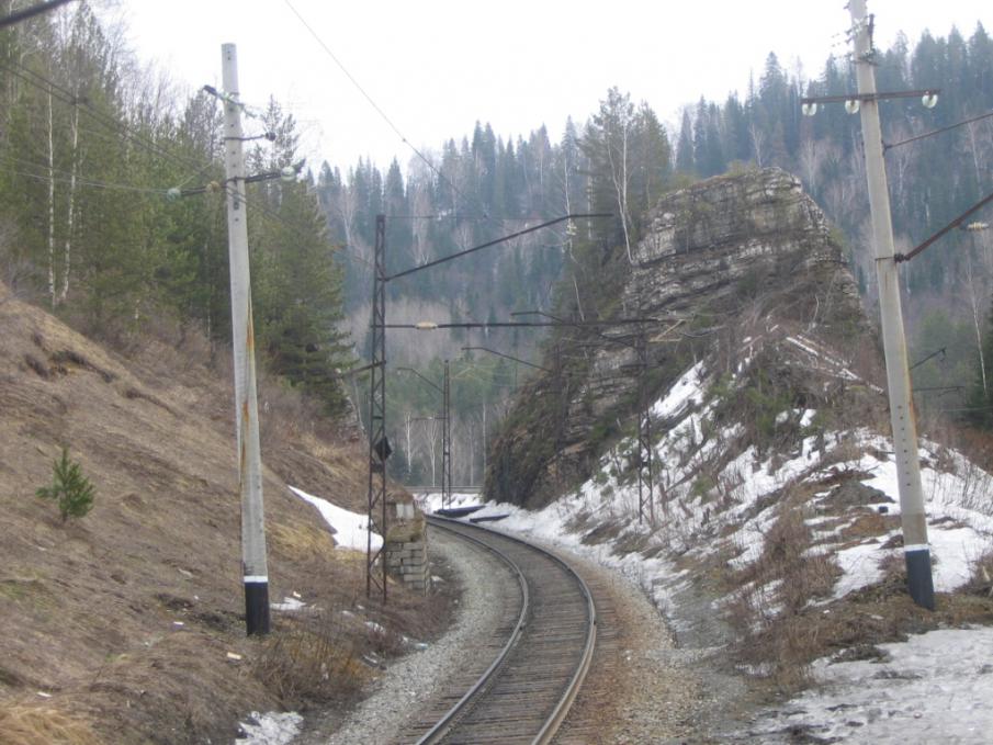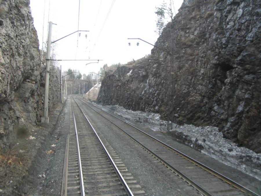Проехать по этой линии на электровозе нас вынудила природная смекалка: в Усть-Катаве в то время (лет 10 назад, может и сейчас-не знаю) продавали очень красивые местные поделки. Картины из каменной крошки на спиле деревьев. Продавали недорого, а если поездов не было - откровенно дешево. И вот, уезжая в командировку в Дему (Уфа), пол отдела назаказывала нам этих картинок. А привезти с нормальных испытаний не получилось - не поставил ДНЦ соединенный по Катаву, потащил в Кропачево. И вот, накануне отъезда мы решили зафрахтовать электровоз и смотаться за картинками. Решили, стали действовать: заказали и подготовили электровоз, договорились с тЧ, чтобы бригаду выделил, выпросили нитку у дороги и поехали (я потом отчет из пальца высасывал о результатах поездки). А вот когда ехали, поснимали очень много интересных мест: и каменную (скальную) выемку, и противолавинную галерею, и скорбное место под Ашой, где в 89-м случилась трагедия со 111 и 112 Новосибирск-Адлер-Новосибирск. Проехали по перегону Ерал-Симская, на котором 5 лет спустя случится ещё одна большая трагедия. Но не буду о грустном: фото делались из кабины, иногда прямо через лобовое стекло, удалось заснять достаточно много интересных природно-железнодорожных объектов, а так же раритетов на ст.Аша оффтопик