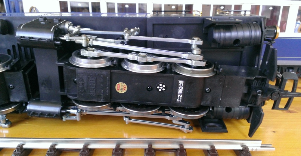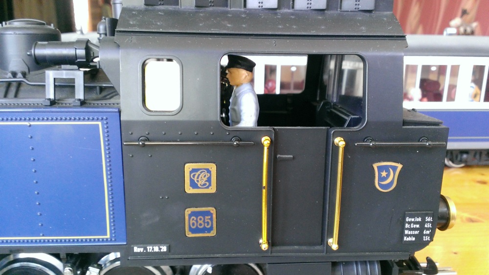 Сделан с претензией на копию. Весь кузов из пластика (металла по-минимуму). У кабины открываются 2 двери; не подпружинины, но не болтаются, а прочно защёлкиваются. В комплекте 2 фигурки: машинист и кочегар. Радис поворота 600мм. Значит по идее он должен пройти по любым гартенбанским радиусам. Вес 3.6 кг; длина 510мм; ширина 125 мм; высота 165 мм. Все модели аналоговые, но со звуком. 2 двигателя. Все 6 оси ведущие. Парогенератор. Эпоха II. Последний раз редактировалось VovaTuf; 15.08.2015 в 11:29. |